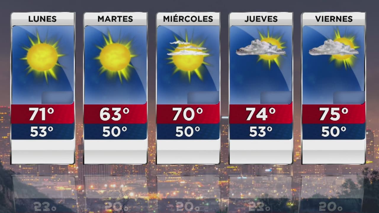 Para este primer día de la semana se pronostican vientos constantes, poca nubosidad, temperaturas máximas de 71 grados Fahrenheit y mínimas que rondarán los 53.