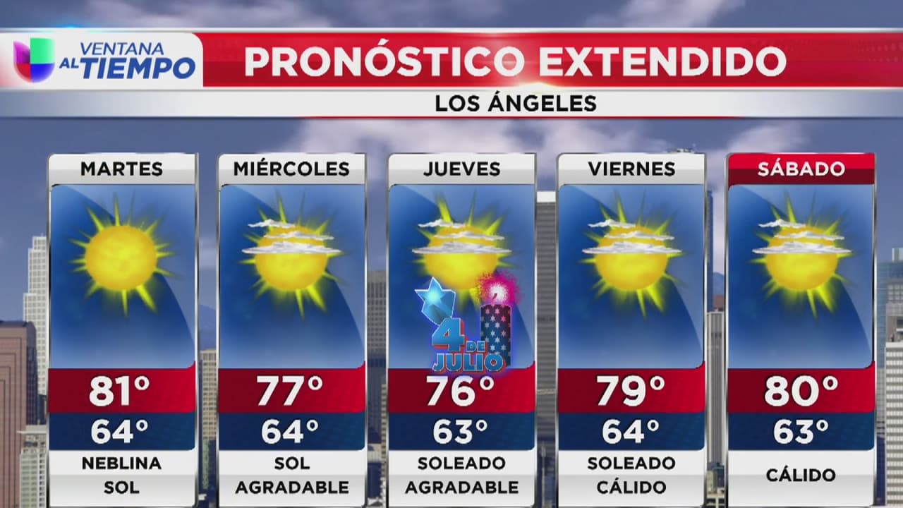 Para esta jornada se pronostican temperaturas máximas de 81 grados Fahrenheit, mínimas de 64 y algo de neblina para las horas de la mañana. Por otro lado, se esperan condiciones similares para el miércoles.