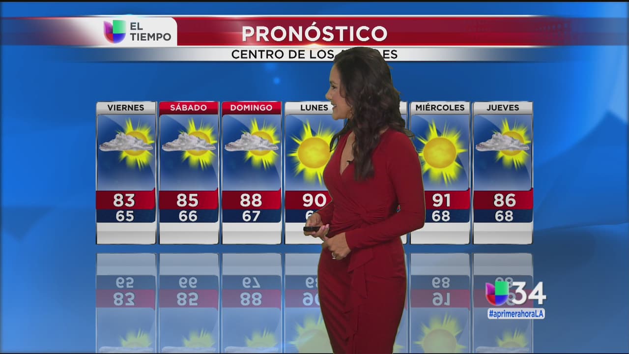 El sur de California tiene temperaturas en los sesenta grados la mañana de este viernes y se espera que asciendan a 83 grados a lo largo del día. Se anticipan temperaturas más altas el fin de semana.