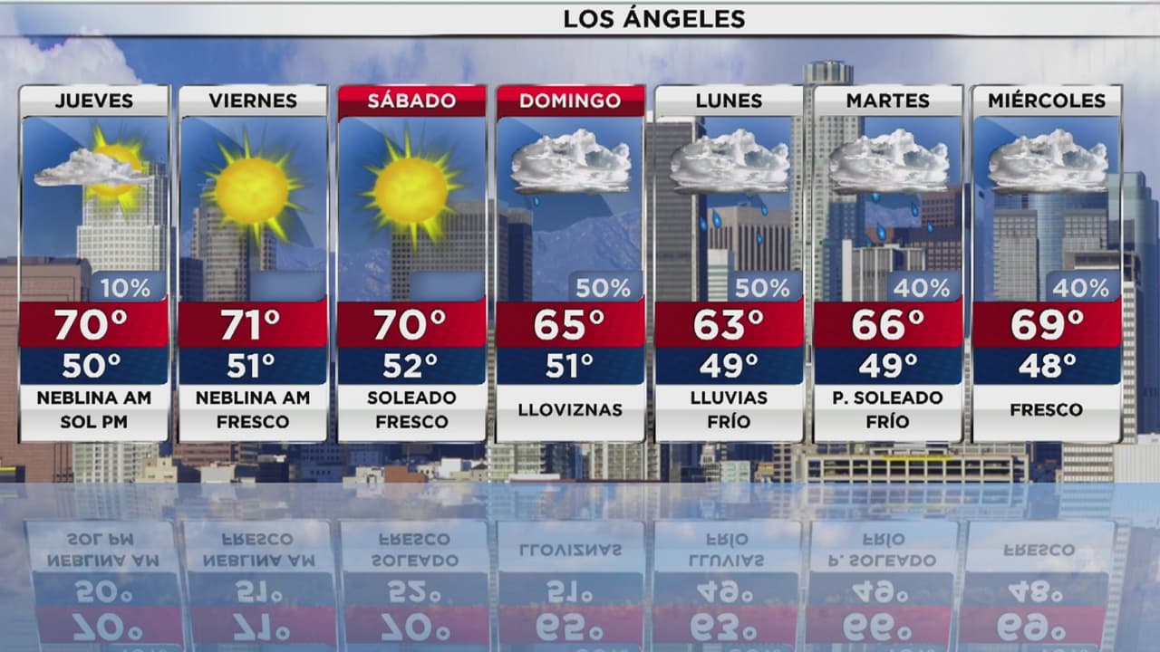 Las temperaturas oscilarán entre los 50 y 70 grados Fahrenheit. La probabilidad de precipitaciones es del 10% y se espera una tarde con cielos soleados.