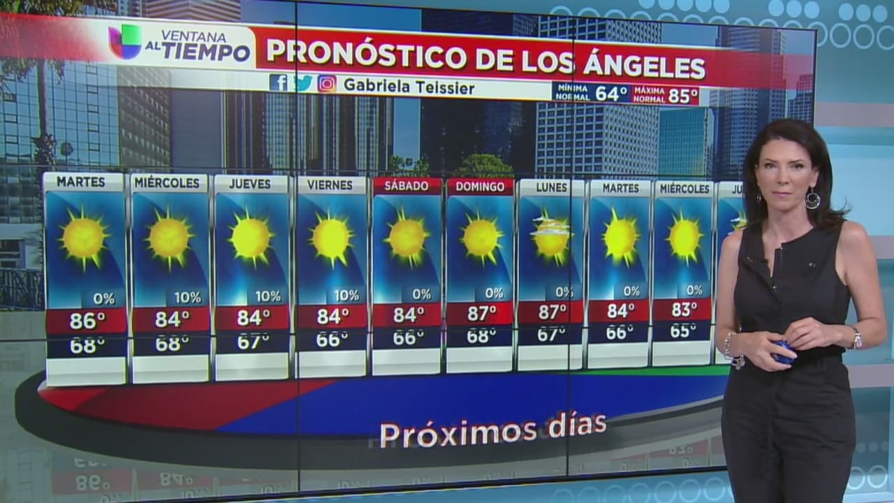 Continúan las condiciones agradables en el sur de California, por lo que la ciudad experimentará una temperatura máxima de 86 grados Fahrenheit y una mínima de 68.