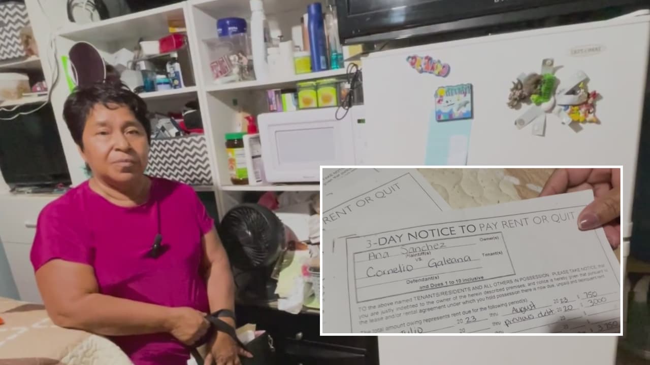 Ethelberta Zapata y su esposo, Cornelio Galeana, viven en alquiler en una habitación en Compton desde hace 14 años. La mujer asegura que, pese a las condiciones del inmueble, el ambiente era tranquilo y la dueña les daba un buen trato; sin embargo, afirma que “desde que se volvió cristiana empezó a tratarnos mal porque no asistimos a su iglesia”. Por su parte, Ana Sánchez, la propietaria, señala que le deben más de $5,000.