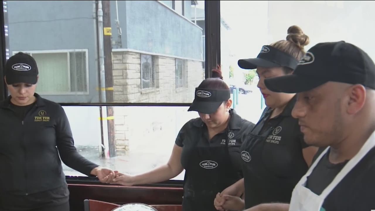 Es el Día de Acción de Gracias y los empleados de una tienda de donuts en la ciudad de Montebello buscan salir adelante, muchos de ellos sin sus familias cerca.
