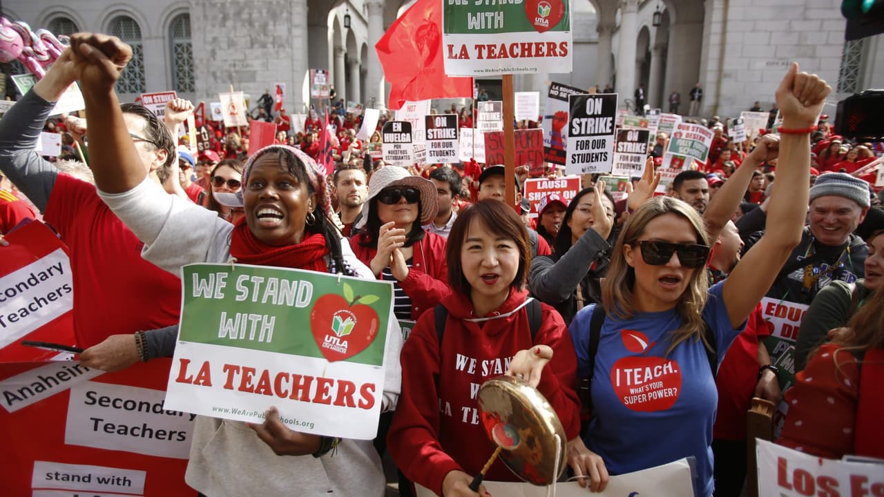 Maestros de Los Ángeles llevan su huelga a las celebraciones del Día de Martin Luther King