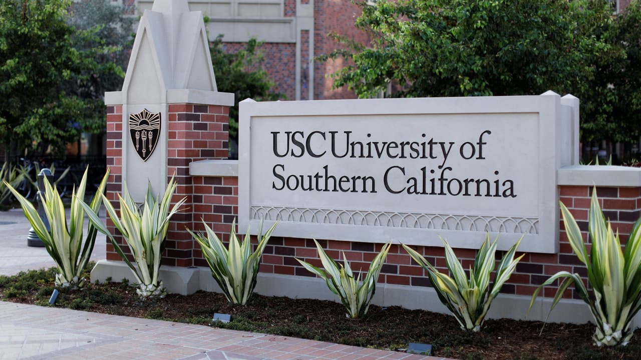 Manifestantes protestan frente a la Universidad del Sur de California por las políticas de la institución