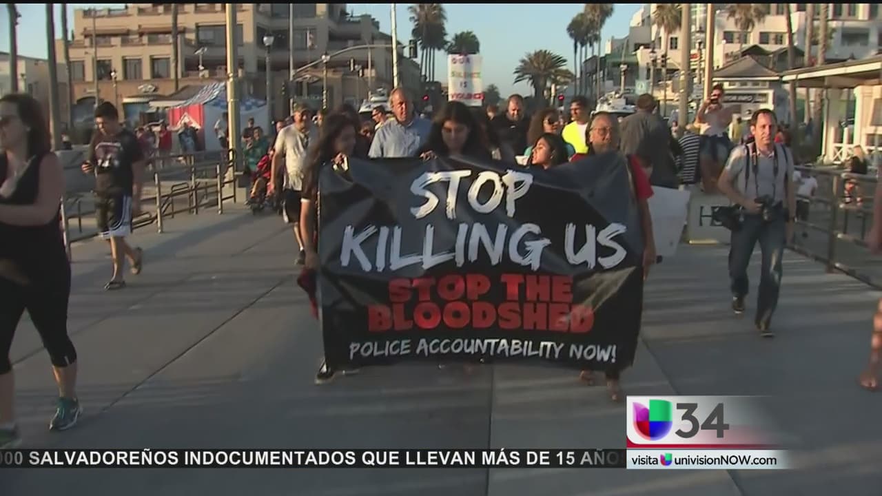 Decenas de personas se reunieron en el muelle de Huntington para pedir por la paz y unidad con una marcha en la que se manifestaron y se recordó a familiares fallecidos en altercados con la policía.