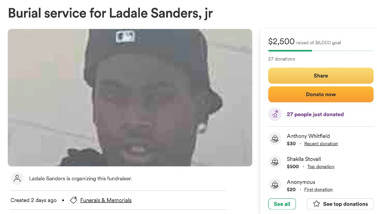 El padre de LaDale Sanders también abrió una petición en la plataforma GoFundMe para que lo ayuden a enterrar a su hijo, quien a su vez dejó un menor de 2 años huérfano.