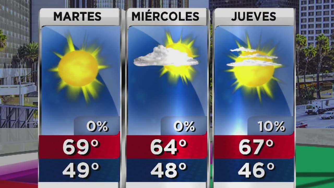 En todo el sur de California habrá tendencia de temperatura fresca y viento calmado este martes. En Los Ángeles la máxima será de 69 grados y no hay probabilidades de lluvia.