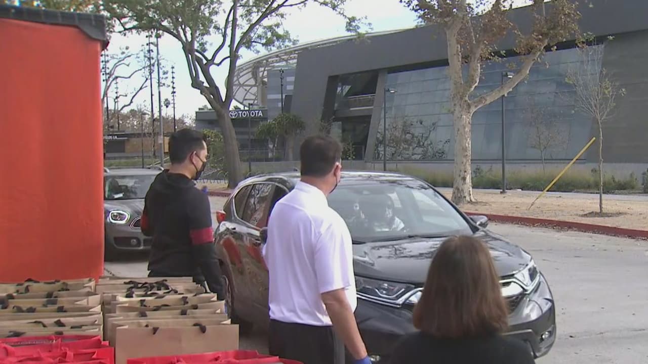 La distribución de las donaciones fue hecha por atletas de la Universidad del Sur de California (USC). Debido a la pandemia de coronavirus y el recorte de horas laborales, muchos padres de familia no tendrán dinero para los regalos de sus hijos en esta Navidad.
