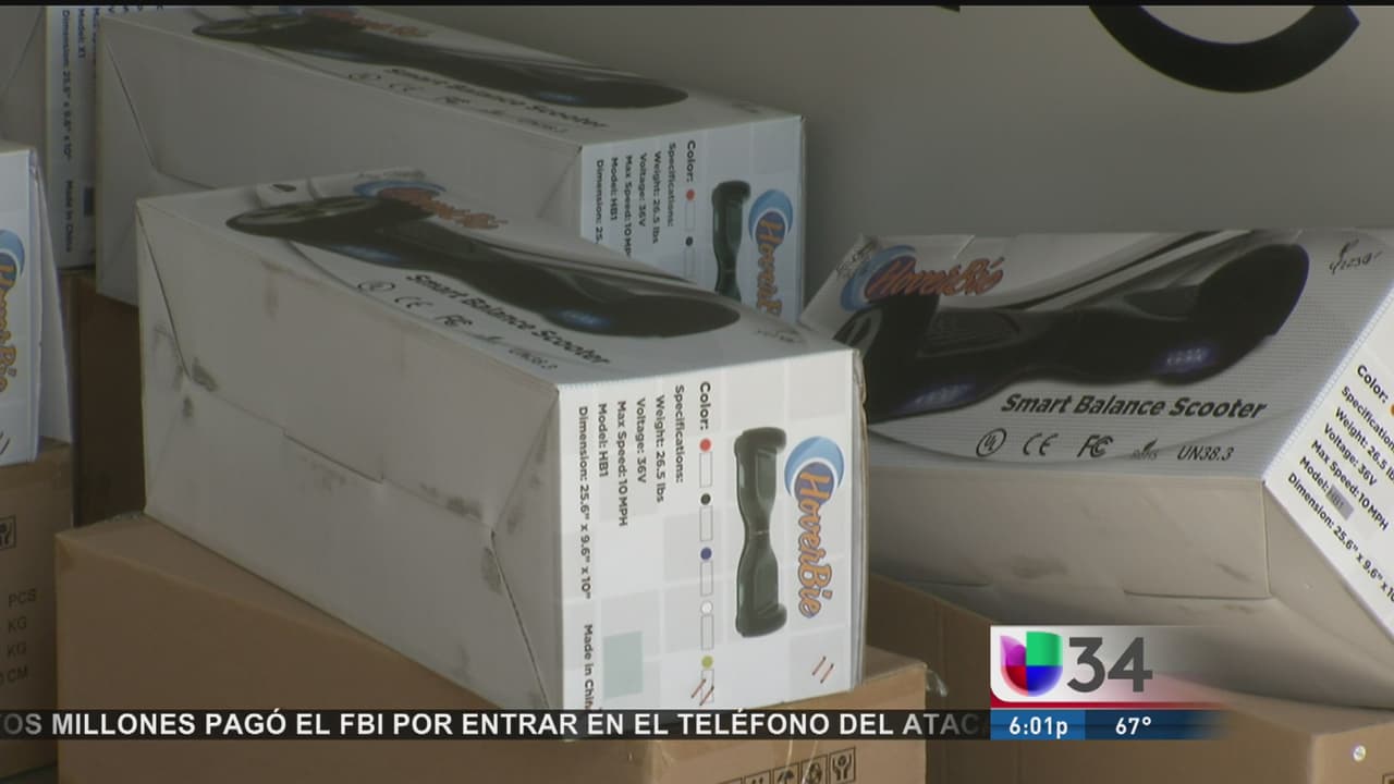 Un equipo de control de piratería del sheriff de Los Angeles decomisó un gran cargamento de "hoverboards" falsificados.