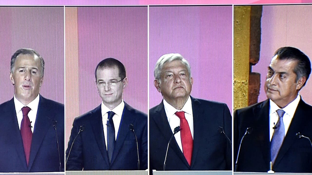 Los candidatos Andrés Manuel López Obrador, José Antonio Meade, Ricardo Anaya y Jaime Rodríguez Calderón, conocido como 'El Bronco', debaten en la Universidad Autónoma de Baja California campus Tijuana sobre comercio exterior, inversiones, seguridad fronteriza y derechos de migrantes. León Krauze, presentador de Univision en Los Ángeles, es uno de los dos moderadores del encuentro.