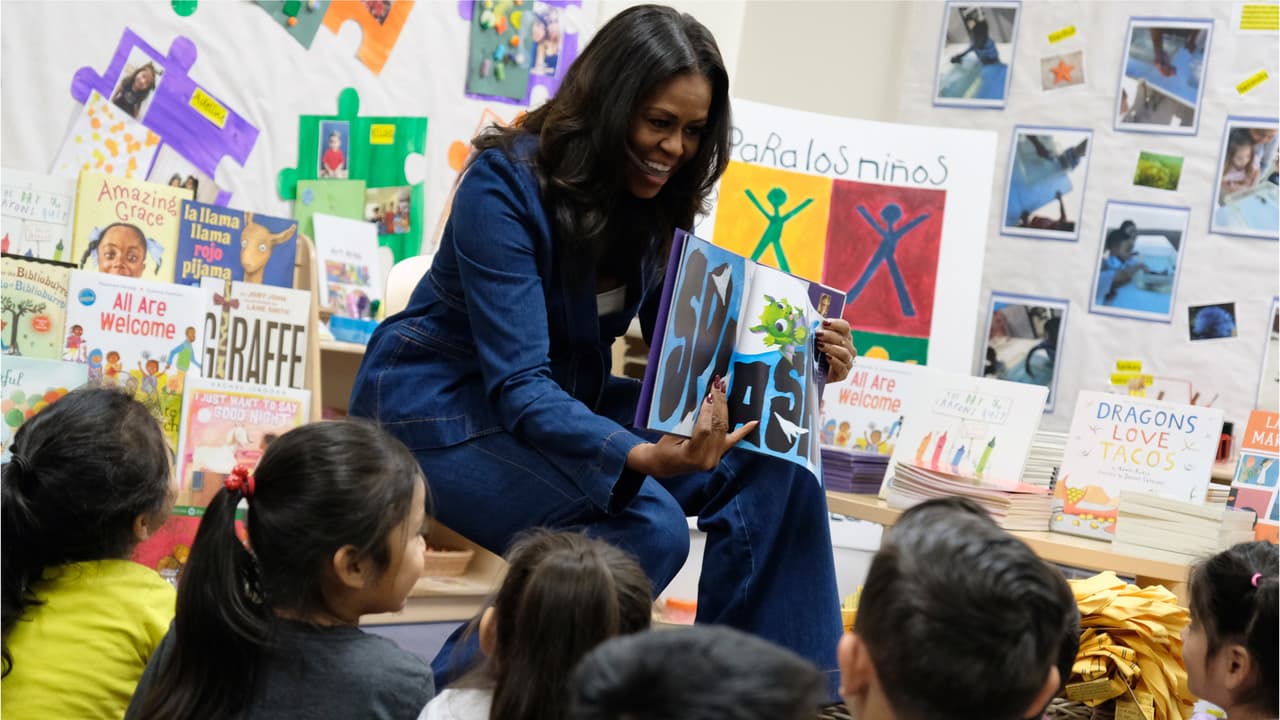 La exprimera dama de Estados Unidos sostuvo un encuentro con 16 estudiantes en el marco de la gira promocional de su libro 'Becoming'. Obama les leyó libros a los niños y les habló de la importancia de la lectura.