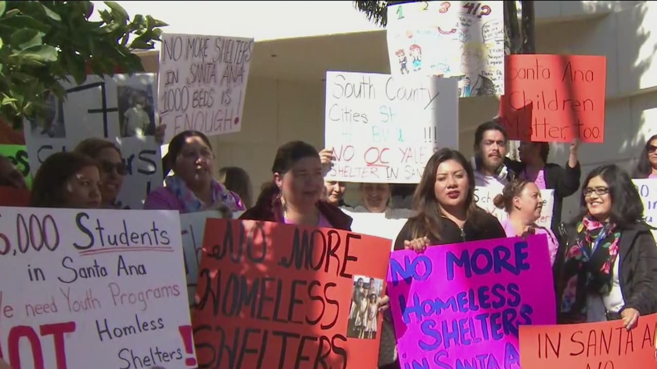 Miembros de la comunidad protestan contra propuesta de instalar un albergue para desamparados en Santa Ana