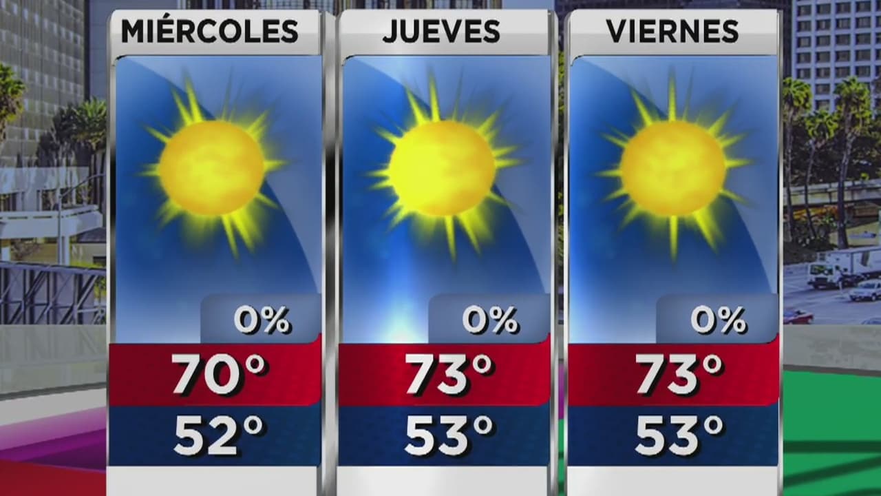 A pesar del intenso frío que se siente en algunos lugares del país, en Los Ángeles será un día soleado y la temperatura se mantiene moderada. La máxima para hoy será de 70 grados, sin probabilidades de lluvia.