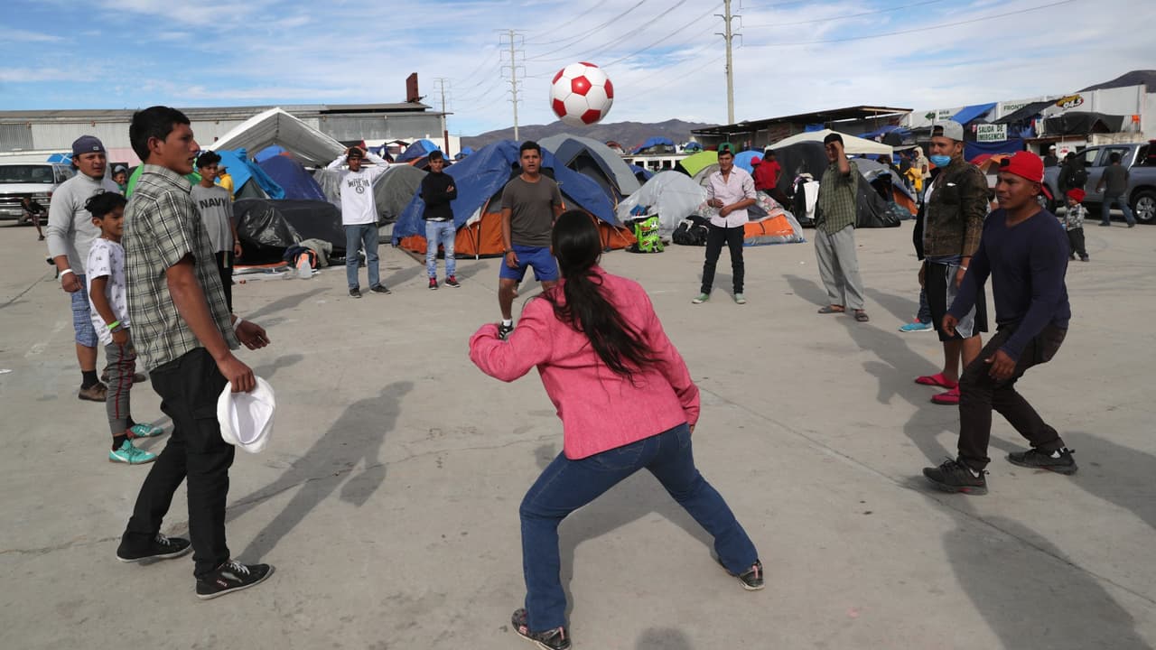 Los centroamericanos que se encuentran alojados en el nuevo albergue 'El Barretal' pasan sus días haciendo diferentes actividades como karaoke, partidos de fútbol o juegos de cartas mientras esperan a que las autoridades estadounidenses les otorguen las citas para su solicitud de asilo.