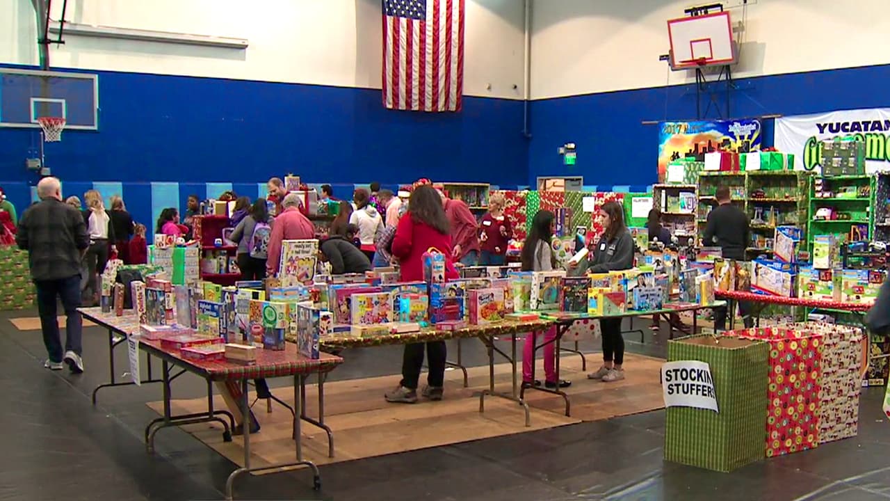 Miles de desamparados de Los Ángeles disfrutan de un almuerzo navideño y reciben regalos