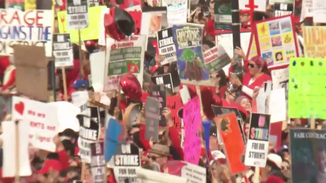 Miles de personas se reúnen frente al Ayuntamiento de Los Ángeles para apoyar a los maestros en su huelga