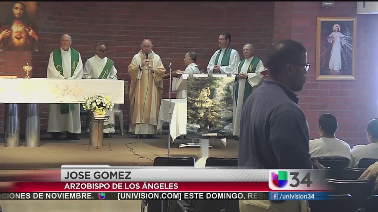 El arzobispo de Los Angeles ofició una misa en un centro de detención juvenil ante cientos de menores.