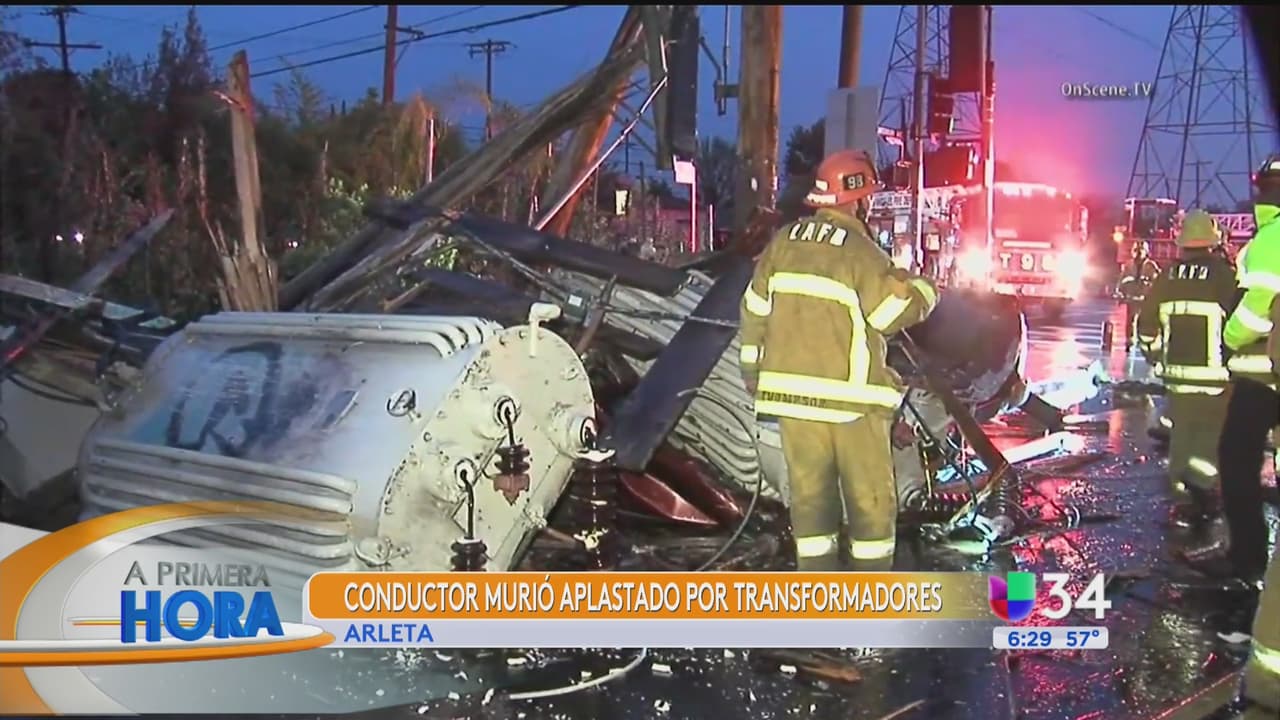 Un conductor falleció luego de estrellarse contra un poste eléctrico y ser aplanado por un transformador.