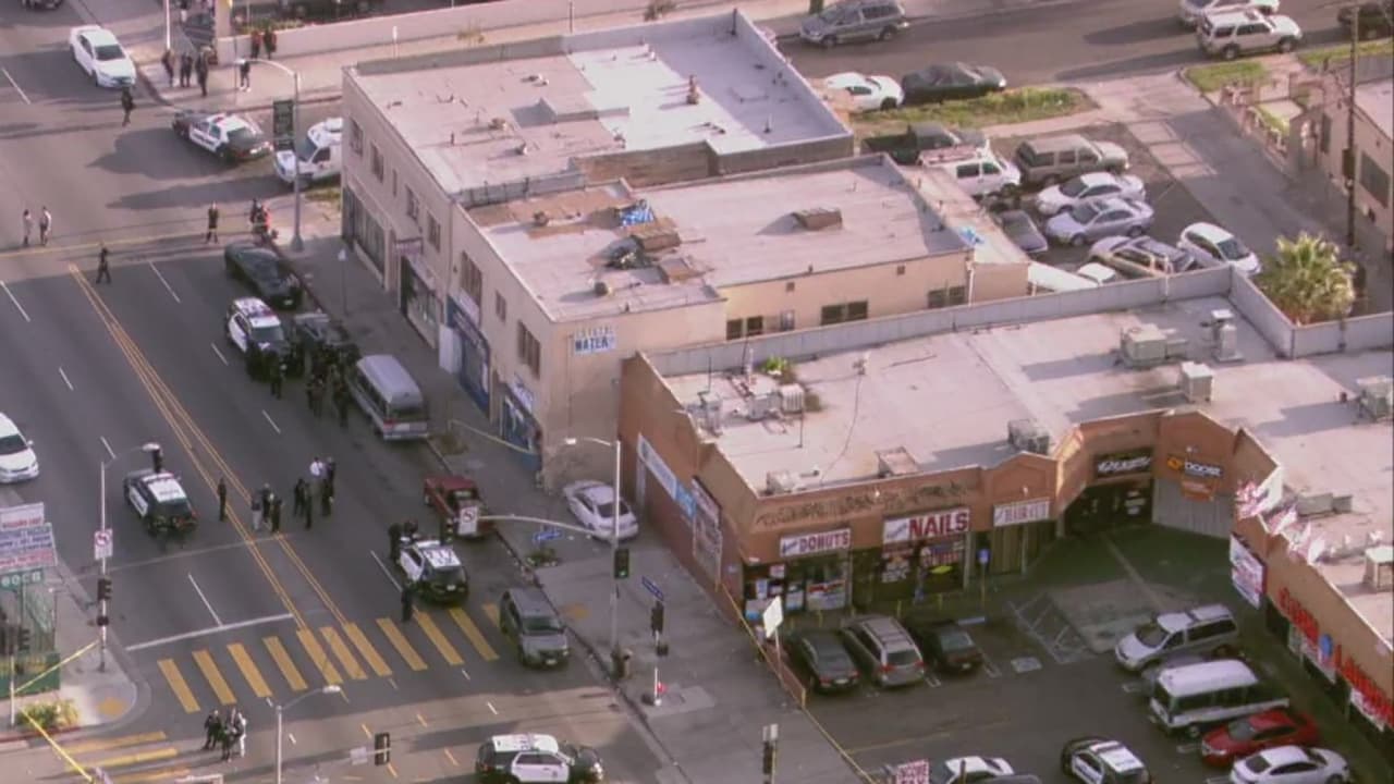 Varias personas fueron detenidas en el área por agentes de la Policía de Los Ángeles (LAPD) que montaron un operativo en busca de un hombre afroamericano del que sólo se dijo vestía jeans y una sudadera oscura con capucha.