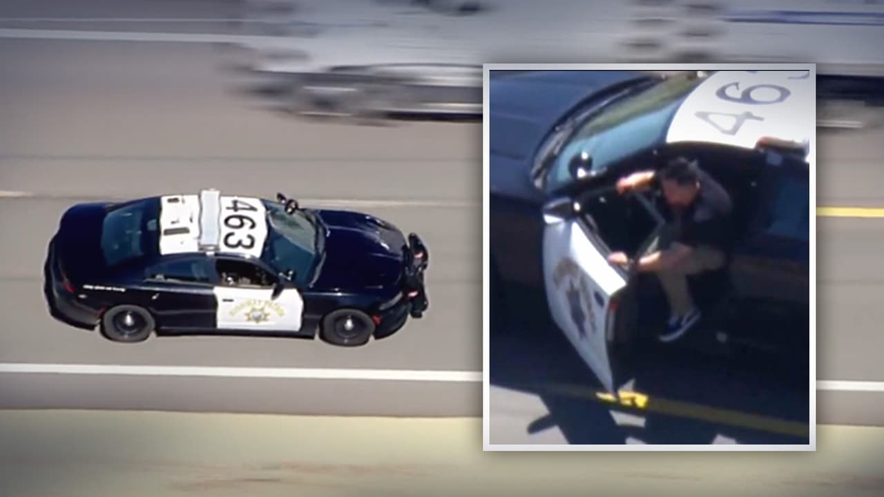 De acuerdo con la Patrulla de Carreteras de California, la persecución comenzó en el área de la Autopista 5 y Hasley Canyon Road. Al parecer el sospechoso estuvo involucrado en una colisión de dos autos y cuando un oficial de la CHP llegó a la escena, el hombre de alguna manera logró subirse a su patrulla e irse.