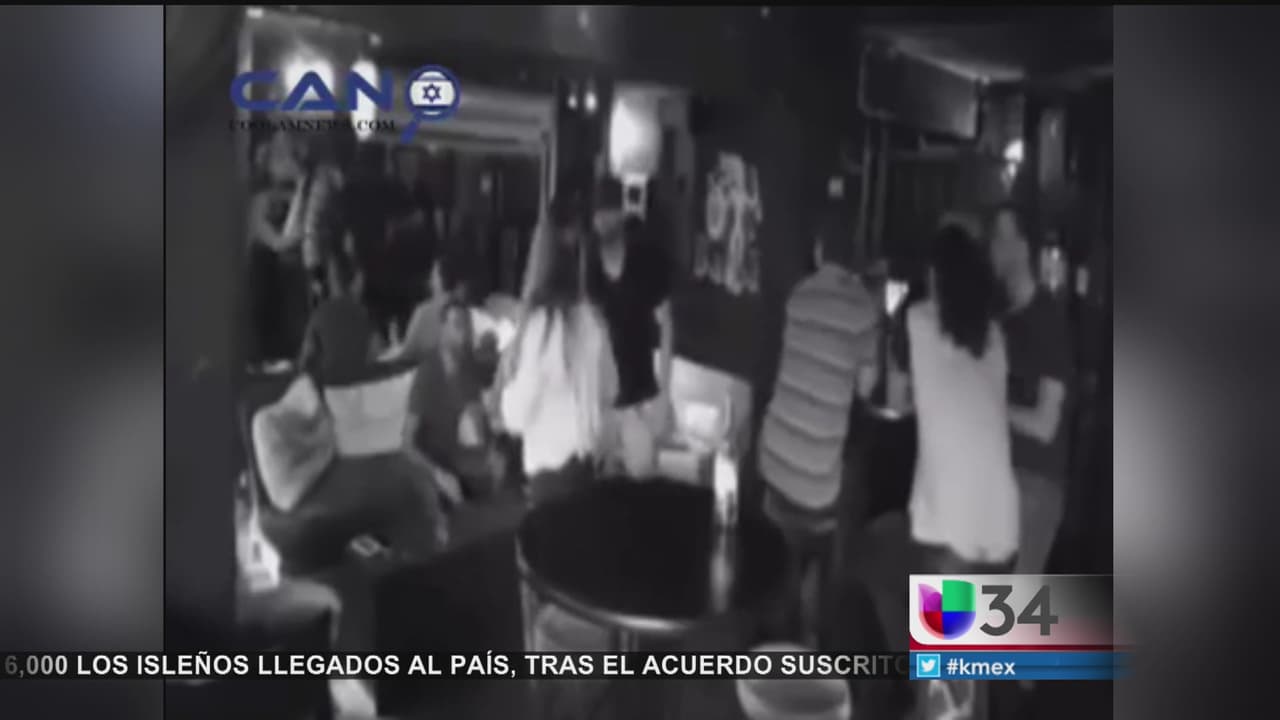 Una mujer en Israel fue captada en video batiendo a tres hombres que intentaron agredirla en un centro nocturno.