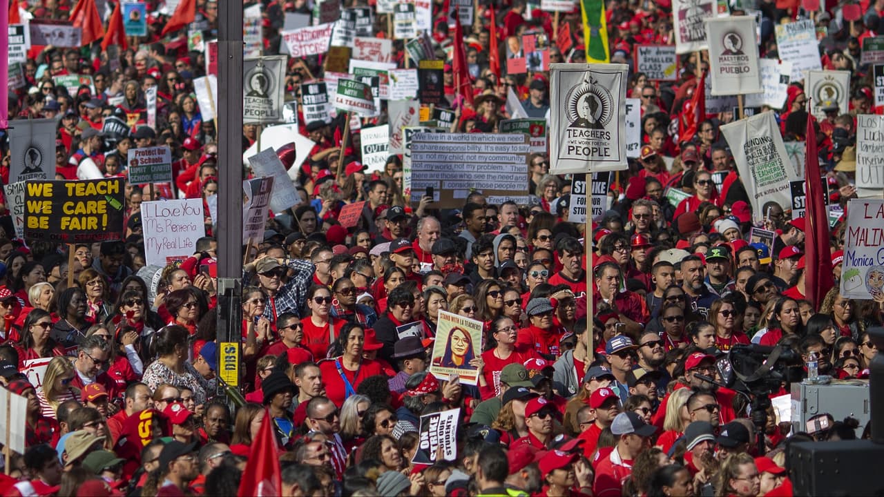 Multitudinaria marcha de maestros en Los Ángeles en medio de las negociaciones para poner fin a la huelga