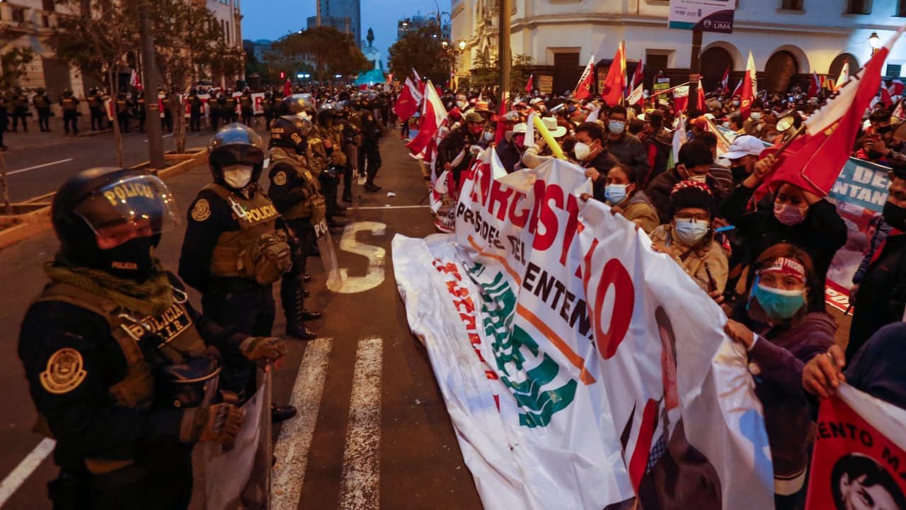 Se sigue “llamando a querer tumbarse una elección, pero por nuestra parte no lo habrá”, dijo Castillo durante una declaración a la prensa internacional. El candidato saludó a quienes defienden el voto a favor de su candidatura que, dijo, representa a “aquellas poblaciones que nunca han tenido voz”.