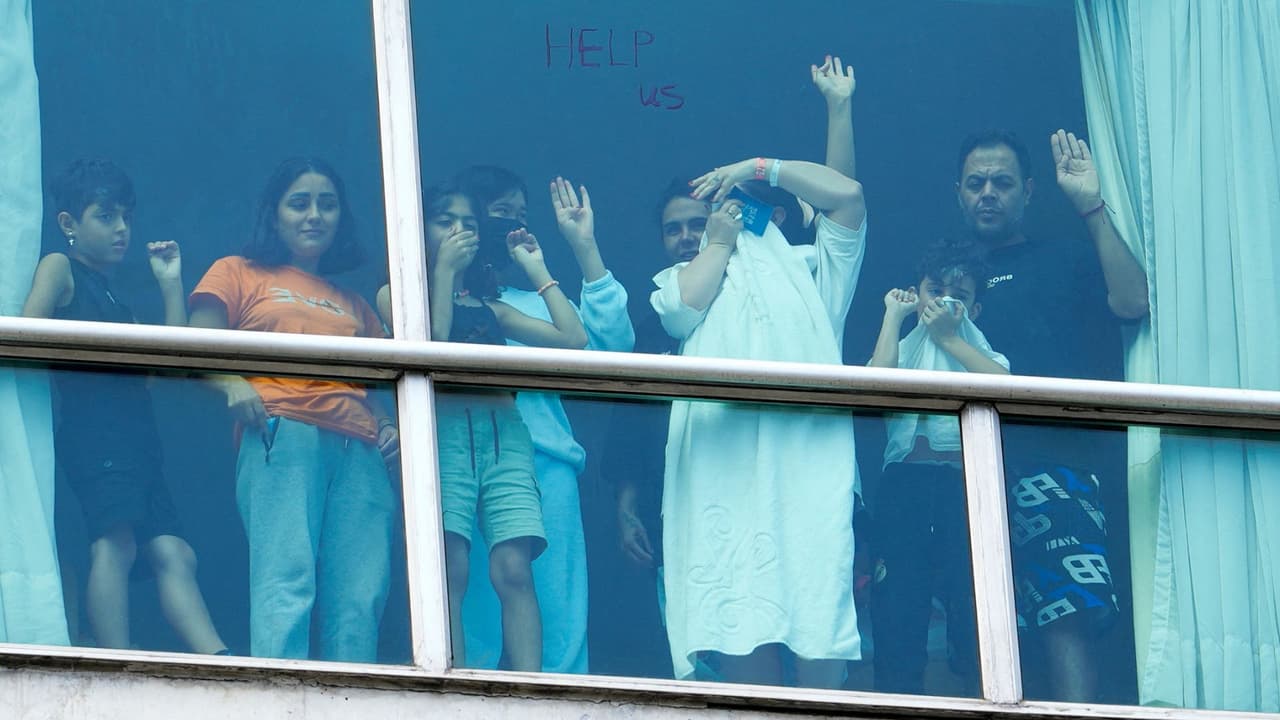 Desde otras ventanas, una mujer cruzó las muñecas de sus manos y otros, entre ellos algunos niños, saludaron cuando vieron que periodistas tomaban fotos desde abajo.