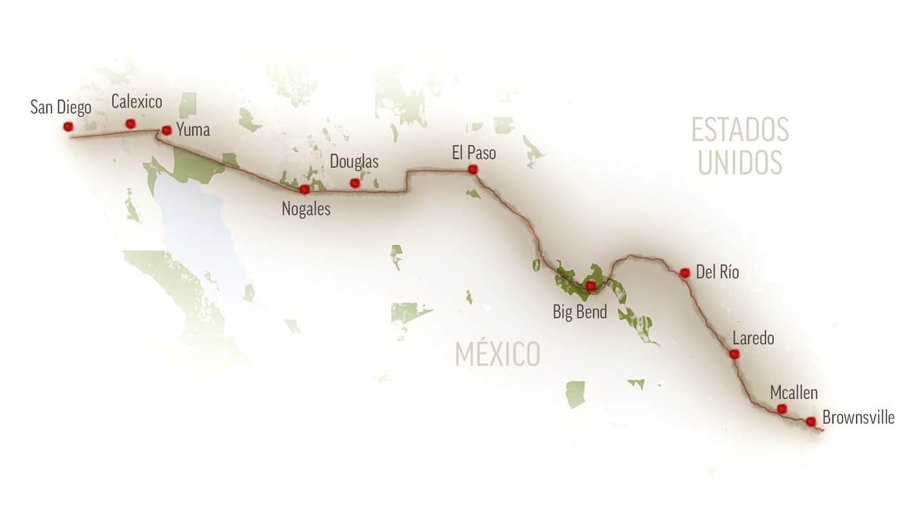 Había zonas en las que al día llegaron a toparse hasta con 10 patrullas fronterizas, como en California, mientras que, por kilómetros, como les ocurrió en el parque nacional del Big Bend, Texas, parecían zonas en donde a los seres humanos los hubieran borrado de la tierra. Fueron testigos de las poblaciones hermanas, esas que a pesar de tener en el medio una valla fronteriza se cantaban canciones de amor o de cumpleaños de un lado del muro hacia el otro.