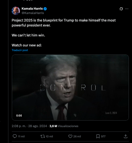 Trump denominaba la propuesta como algo extremo, y coincidencialmente su contrincante en las elecciones del 5 de noviembre de 2024, Kamala Harris, también. “El Proyecto 2025 es el plan para que Trump se convierta en el presidente más poderoso de la historia”, escribió Harris en X (antes Twitter), junto a un video del entonces candidato diciendo frases sobre diferentes temas.