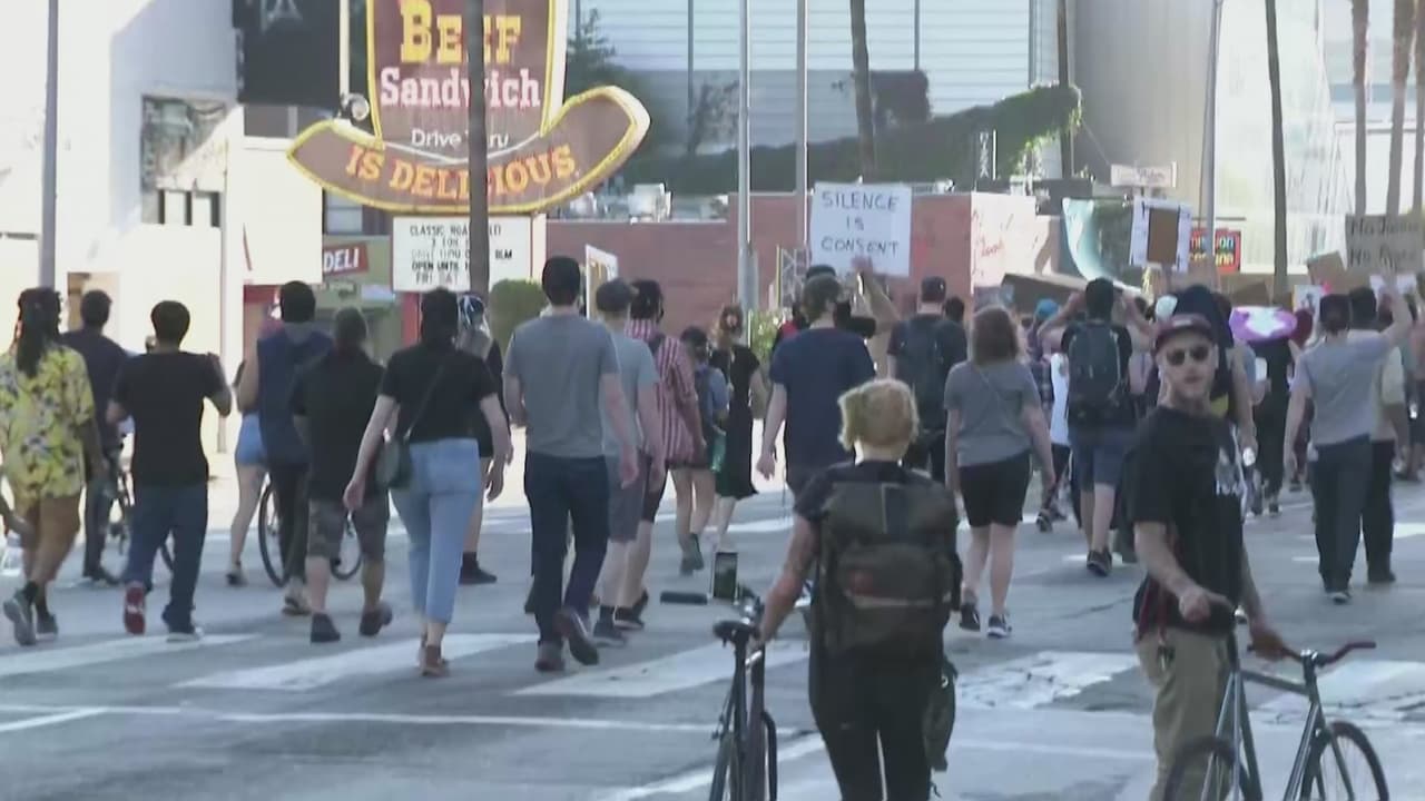 Decenas de personas se han dado cita la tarde de este jueves con pancartas sobre Sunset Boulevard. Los manifestantes expresan con cantos y gritos todo lo que están sintiendo y lo que quieren que cambie. No se ha reportado ningún tipo de problemas en medio de las movilizaciones.