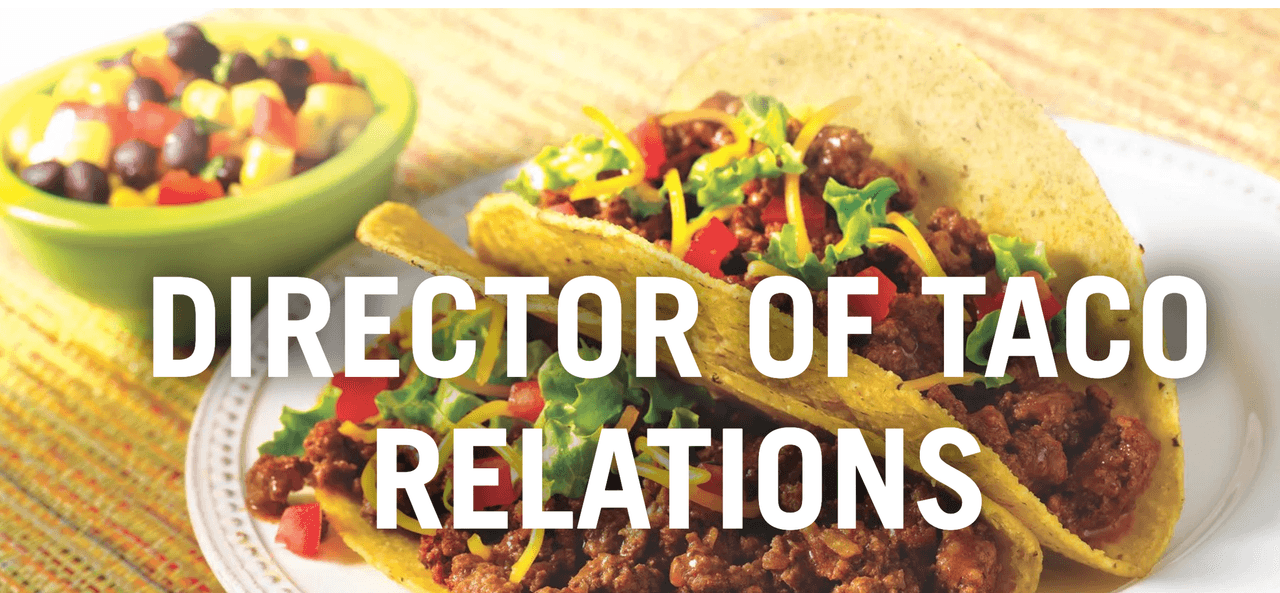 La La compañía de especias McCormick está buscando a su primer director de "Relaciones Públicas de Tacos' una oportunidad temporal que pagará $25,000 mensuales por cuatro meses a quien demuestre que conoce da tacos, cree nuevas recetas del platillo con los sazonadores de la marca y mantenga al día la conversación en las redes sociales, creando nuevas tendencias y dando a conocer la marca en el mundo virtual, además, debe estar dispuesto a viajar y a probar diferentes tipos de tacos.