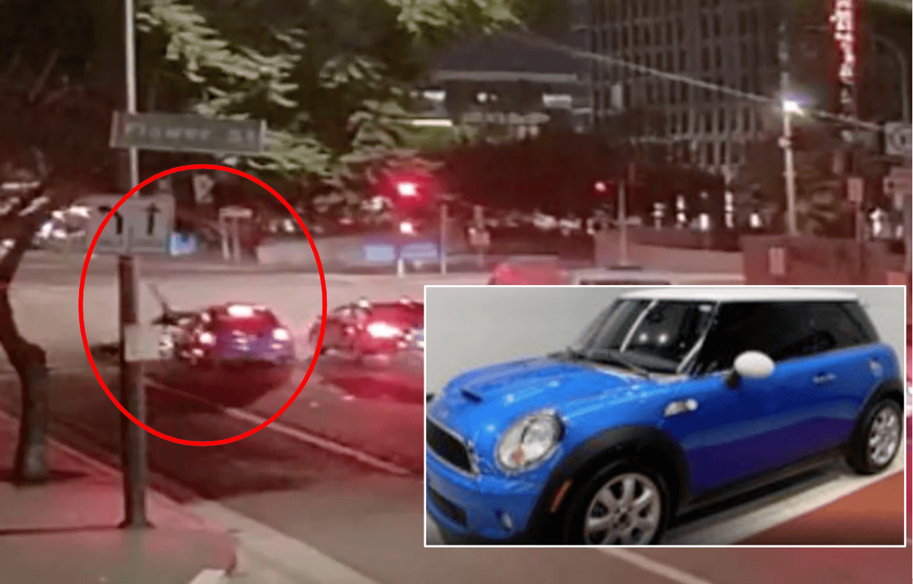 Las autoridades de Los Ángeles buscan al conductor de un Mini Cooper, color azul, que atropelló a un motorizado, en plena luz roja. El arrollamiento, en la intersección entre el oeste de la calle 3 y la Flower , quedó captado en video y se evidencia cómo el responsable se fuga de la zona, dejando a la víctima gravemente herida.