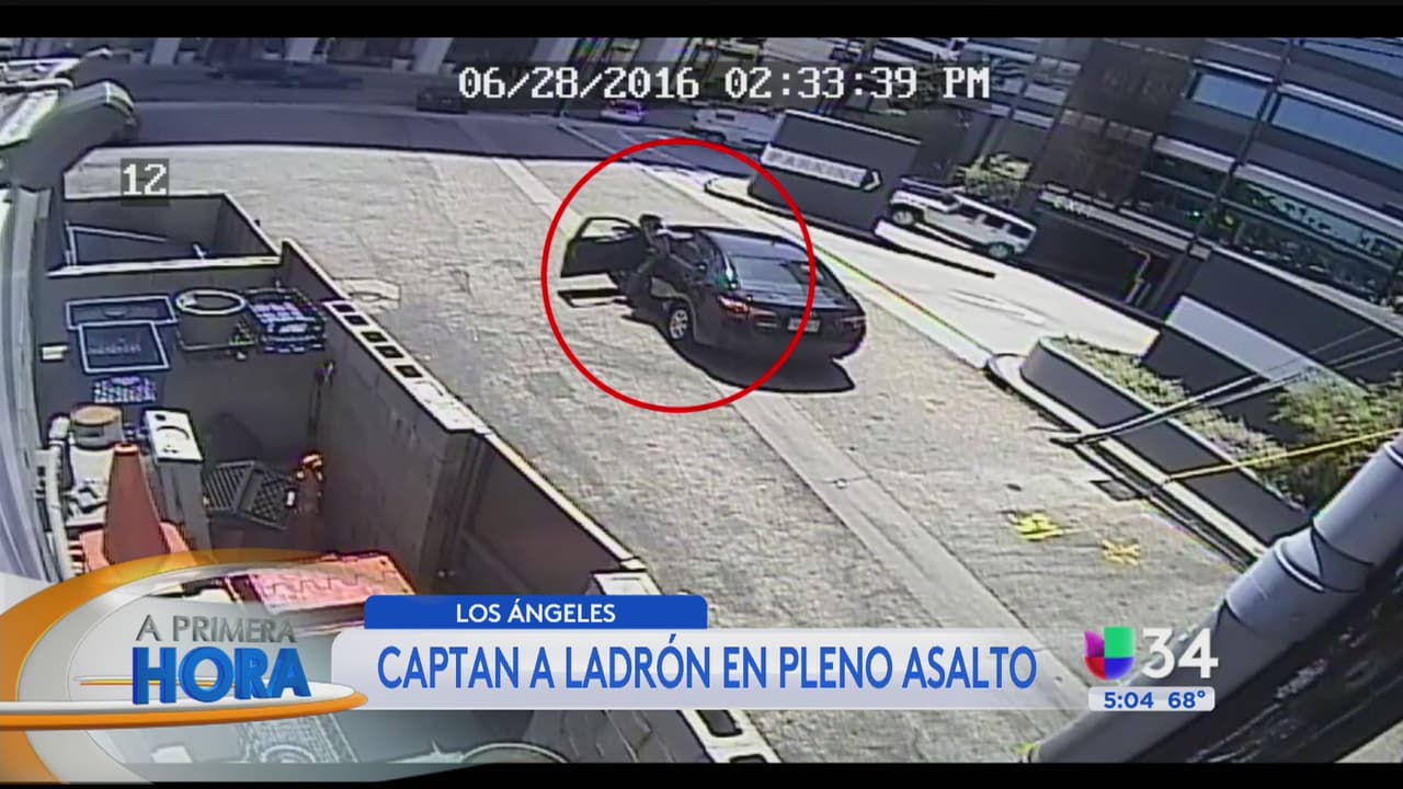 El individuo fue captado en el momento en el que se mete al vehículo de una mujer y le roba la cartera en el oeste de Los Ángeles.
