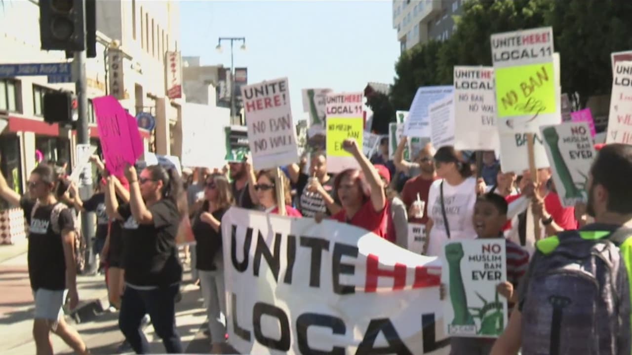 Los manifestantes se movilizaron para protestar por el veto en Estados Unidos para personas provenientes de Irán, Chad, Libia, Siria, Yemen y Somalia. Axel Páez, miembro de CHIRLA, manifestó que todos los humanos tienen los mismos derechos y que el país norteamericano está hecho con base en los inmigrantes.