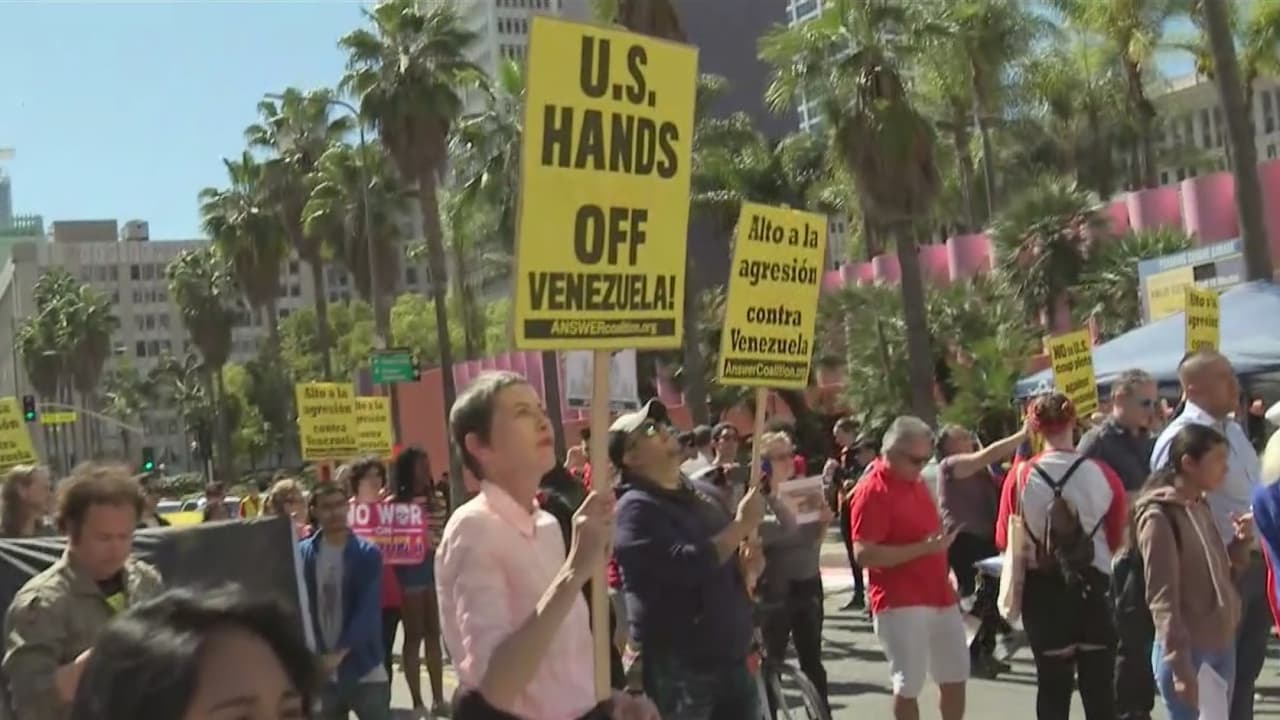 Organizaciones protestan en Los Ángeles para pedir que EEUU no intervenga en Venezuela