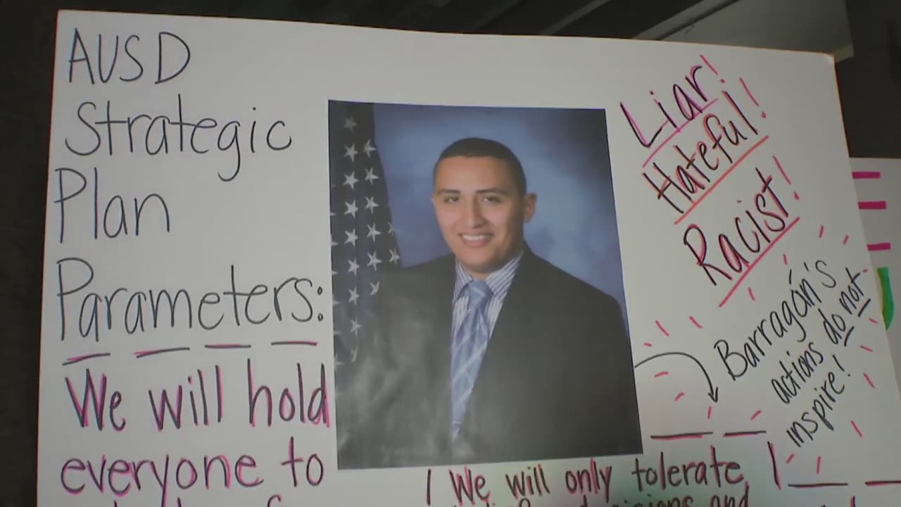 Padres y maestros se manifestaron en el Distrito Escolar Unificado de Alvord contra un miembro de la Junta