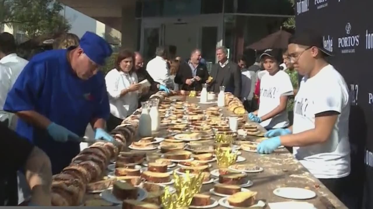 Los cocineros de Porto’s Bakery se animaron a amasar una rosca de 24 pies de longitud, logrando así una marca nunca antes vista en los Estados Unidos.