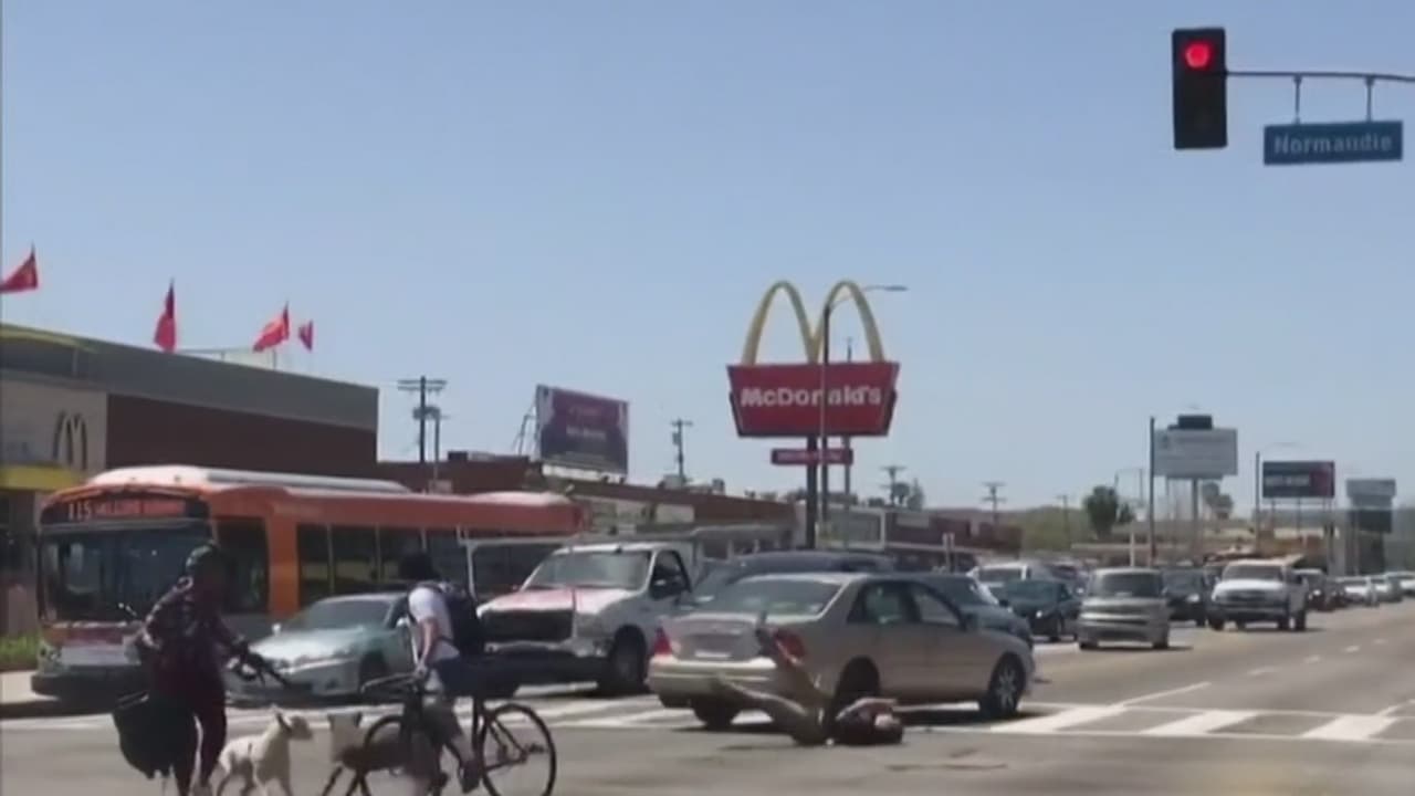 La víctima participaba en un homenaje en memoria de un hombre de 22 años de edad que murió días atrás arrollado por un vehículo. El incidente, que quedó captado en video, ocurrió en la intersección de las calles Normandie y Manchester, en Los Ángeles. Las autoridades les recuerdan a los conductores que darse a la fuga luego de un accidente de tránsito es un delito que se castiga de manera contundente.