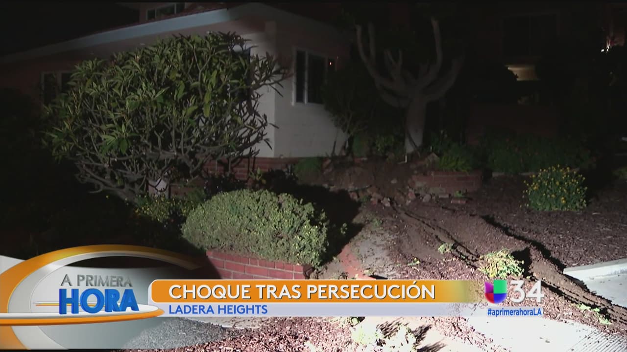Dos sospechosos de haberse robado un auto terminaron estrellándose frente a una casa cuando los perseguía la Policía de Los Ángeles.