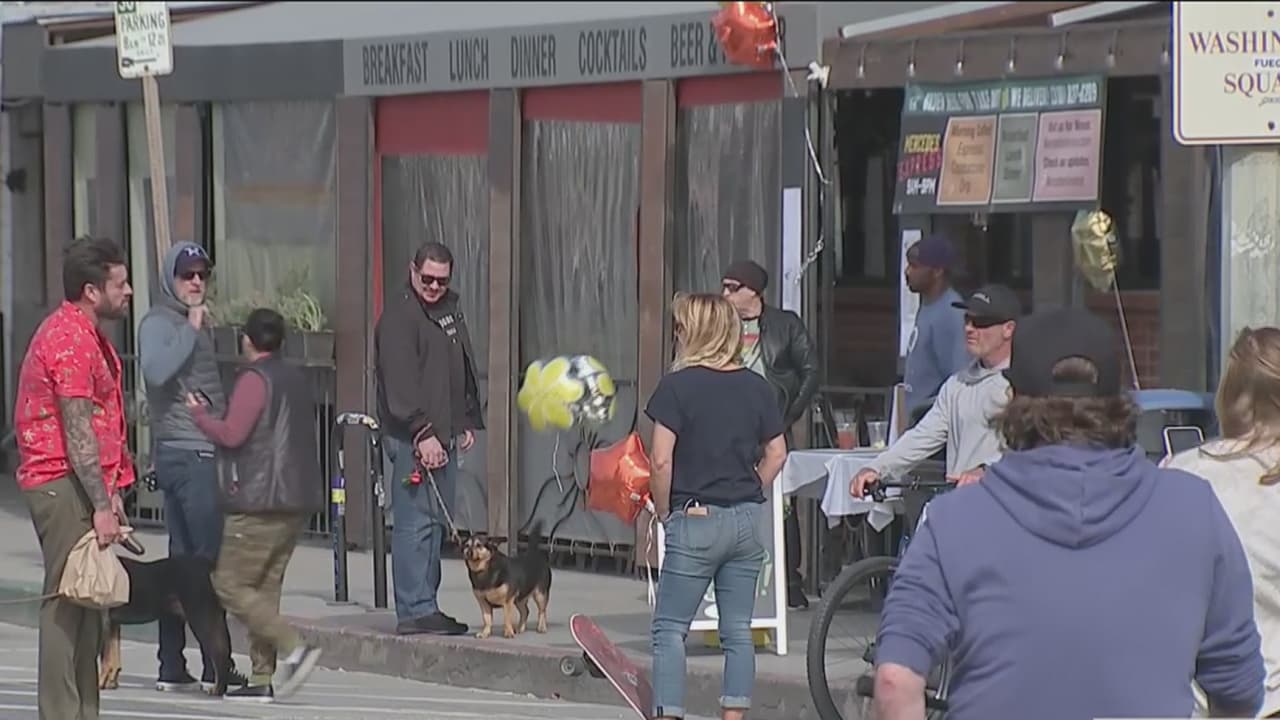 Pese a las restricciones impuestas, decenas de personas salen a recorrer las calles de Venice