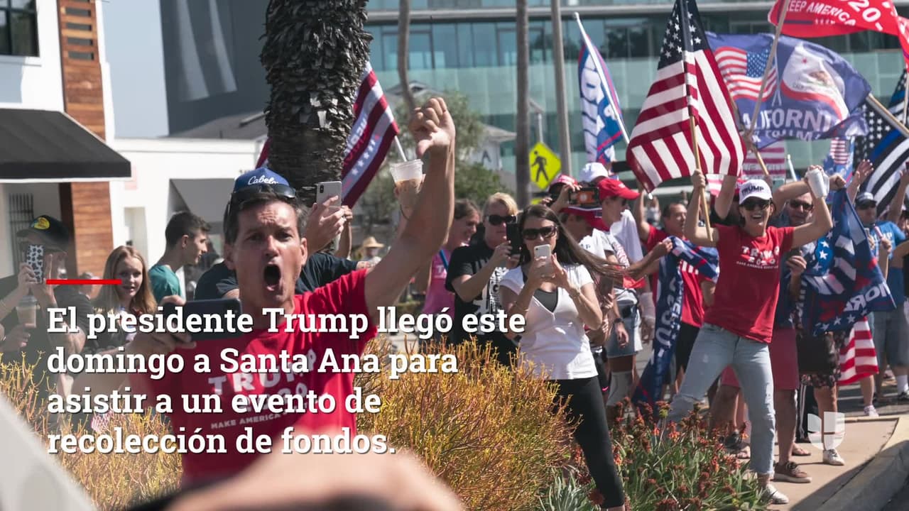 Decenas de seguidores de Trump se reunieron en aeropuerto y calles de Newport Beach para recibir al candidato por la reelección presidencial. La gran mayoría de los asistentes no usaban tapabocas, ni respetaron el distanciamiento social, pese a que el mandatario recientemente fue diagnosticado con coronavirus.
