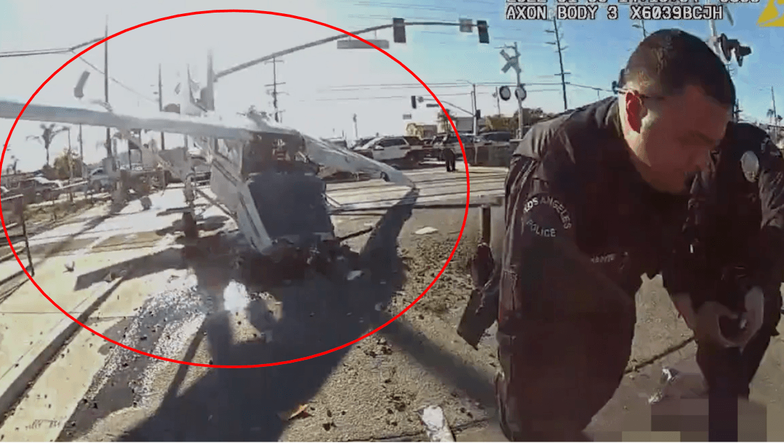 A solo cinco segundos de ser arrollado por el Metrolink, un sujeto fue rescatado por oficiales del LAPD en una acción rápida y exponiendo sus propias vidas, para salvar a al piloto que había perdido el control de su avioneta y debió realizar un aterrizaje de emergencia en plenas vías del tren.