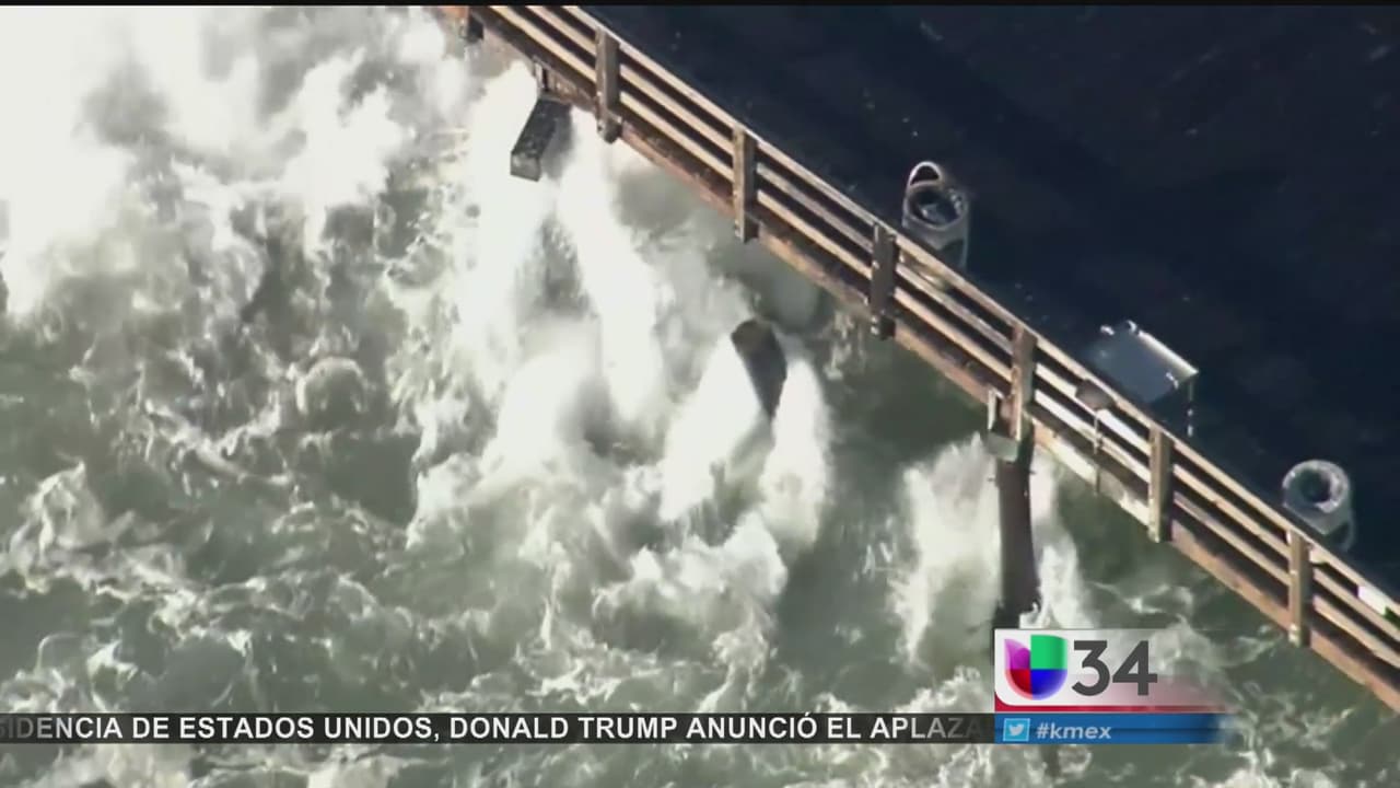 En Ventura, las olas de hasta 15 pies produjeron daños en puentes y algunos edificios. Además dejó a un grupo de surfistas atrapados.