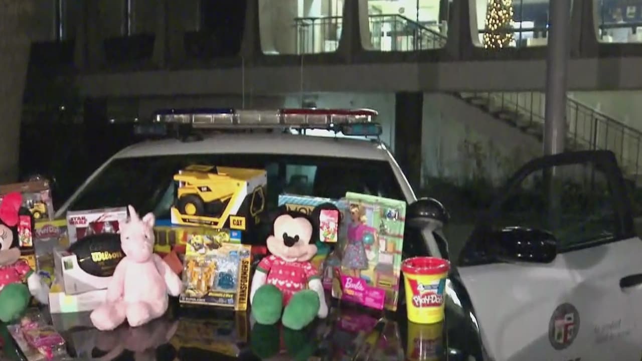 Policía de Los Ángeles recolecta juguetes para niños necesitados en el área de Van Nuys