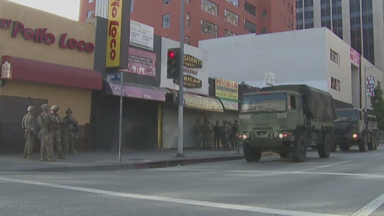 Policía y Guardia Nacional custodian el centro de Los Ángeles para evitar brotes de violencia