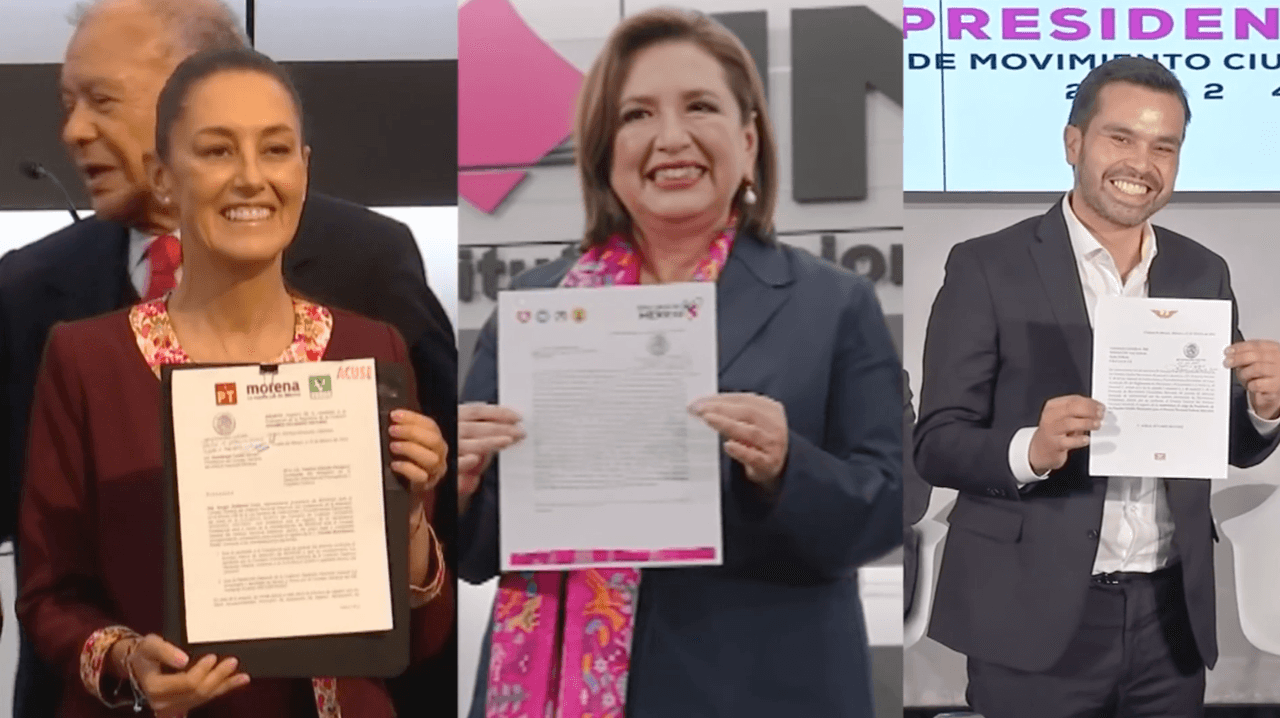 Claudia Sheinbaum, Xóchitl Gálvez, y Jorge Álvarez Máynez, candidatos que disputarán en las urnas la preferencia de los mexicanos, se registraron ante el INE, previo al banderazo de las campañas.