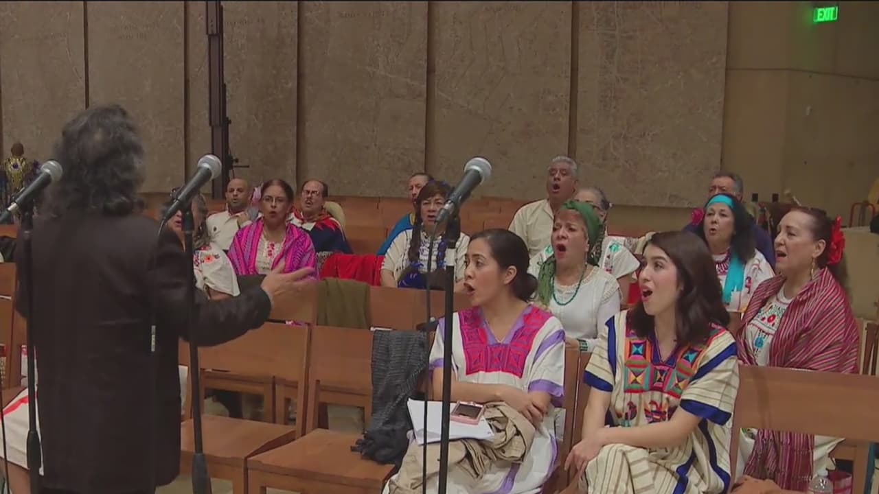 Cerca de 60 menores de edad hacen parte de una obra teatral que ha logrado convertirse en una tradición religiosa para la comunidad hispana del sur de California. En este espectáculo se relata, por medio de bailes, la historia de un joven al que se le aparece la virgen.