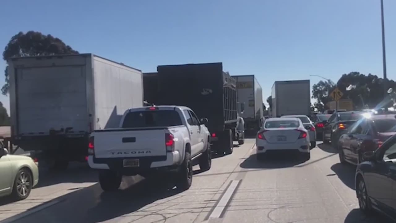 Por supuesto derrame de cianuro en la Autopista 405, conductores quedan atascados por horas en la vía